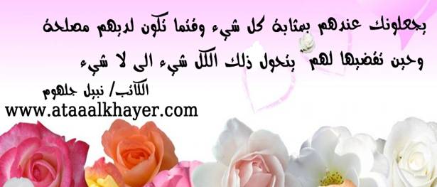 المصلحة من:الأخ الأستاذ / نبيل جلهوم عضو جمعية الكُتَّاب ببيت عطاء الخير عضو إتحاد الكتّاب و المثقفين العرب - مصر عضو رابطة أدباء الشام – لندن عضو الإتحاد العالمى للشعراء والمبدعين العرب عضو إتحاد المدربين العرب عضو رابطة الأدب الإسلامى العالمية http://www.ataaalkhayer.com/up/download.php?img=10031 |