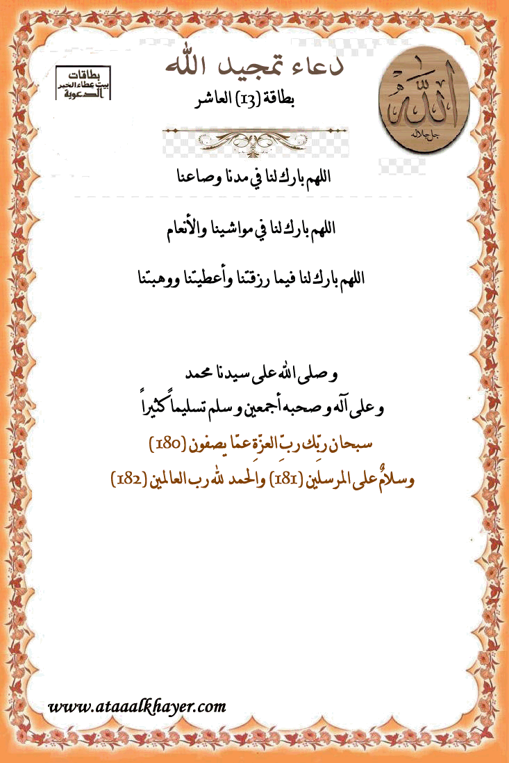 دعاء تمجيد الله بطاقة (13) الجزء العاشر