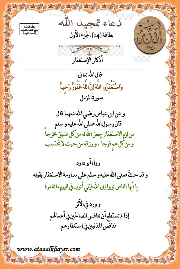 دعاء تمجيد الله بطاقة (14) الجزء الأول http://www.ataaalkhayer.com/up/download.php?img=9641 من:الأخ الدكتور / عبدالله بن مراد العطرجي عضو جمعية الكُتَّاب ببيت عطاء الخير |