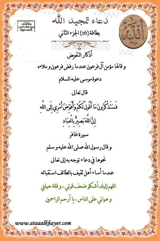 دعاء تمجيد الله (16) الجزء الثاني http://www.ataaalkhayer.com/up/download.php?img=9641 من:الأخ الدكتور / عبدالله بن مراد العطرجي عضو جمعية الكُتَّاب ببيت عطاء الخير |