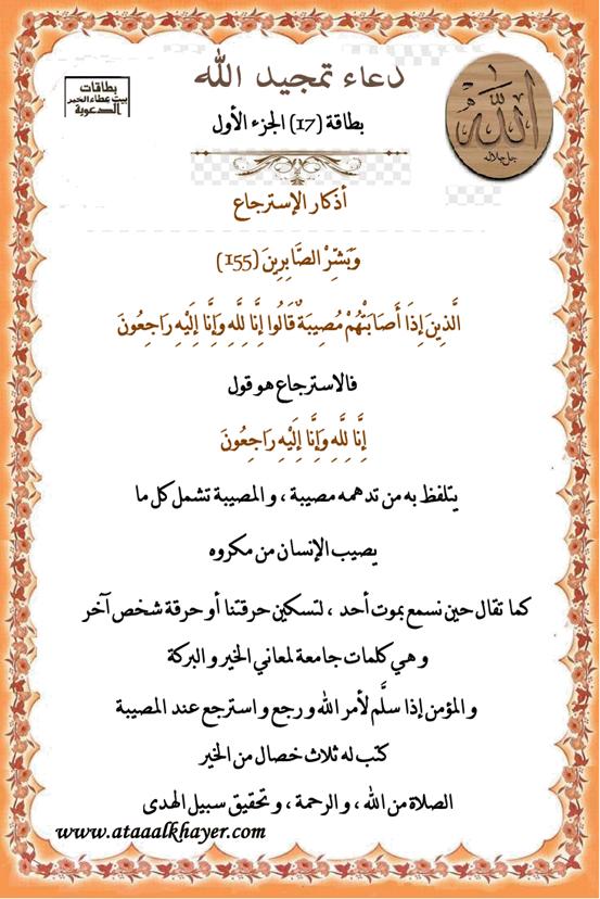 دعاء تمجيد الله بطاقة (17) الجزء الأول