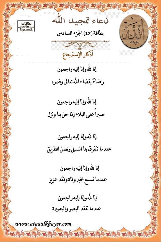دعاء تمجيد الله بطاقة (17) الجزء السادس