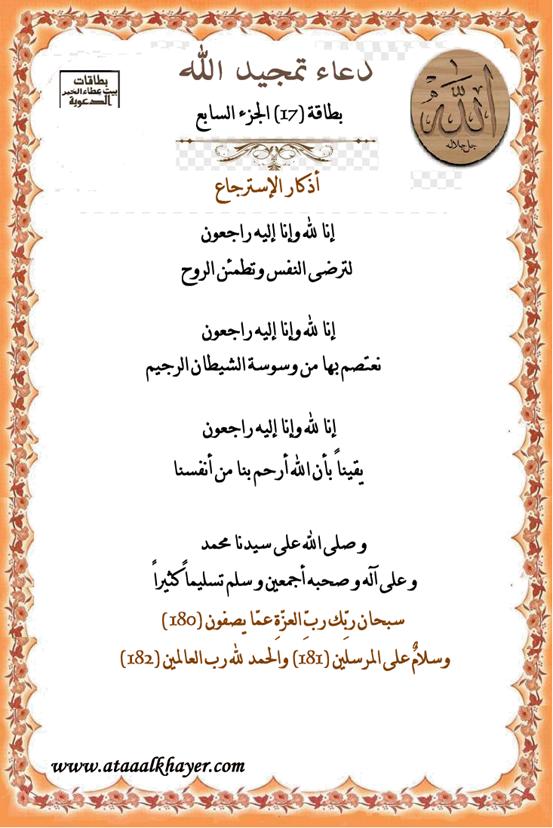 دعاء تمجيد الله بطاقة (17) الجزء السابع