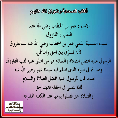 ألقاب الصحابة رضى الله عنهم – الجزء الأول