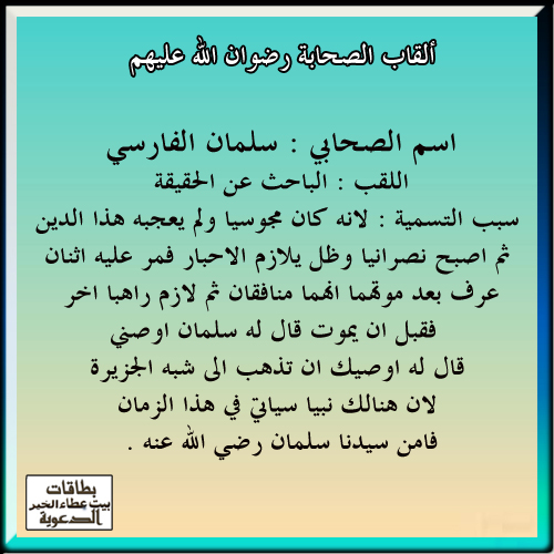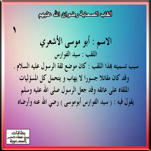 ألقاب الصحابة رضى الله عنهم – الجزء الثانى