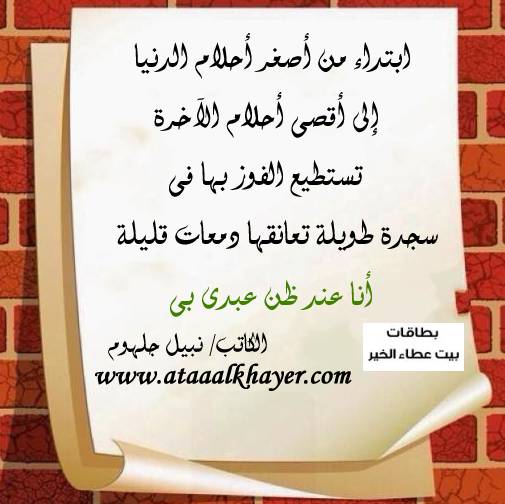 فز بأحلامك من:الأخ الأستاذ / نبيل جلهوم عضو جمعية الكُتَّاب ببيت عطاء الخير عضو إتحاد الكتّاب و المثقفين العرب - مصر عضو رابطة أدباء الشام – لندن عضو الإتحاد العالمى للشعراء والمبدعين العرب عضو إتحاد المدربين العرب عضو رابطة الأدب الإسلامى العالمية http://www.ataaalkhayer.com/up/download.php?img=10581 |