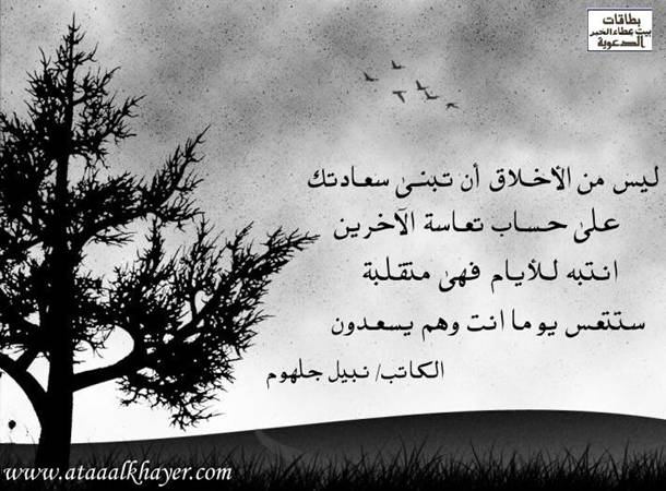 انتبه للأيام من:الأخ الأستاذ / نبيل جلهوم عضو جمعية الكُتَّاب ببيت عطاء الخير عضو إتحاد الكتّاب و المثقفين العرب - مصر عضو رابطة أدباء الشام – لندن عضو الإتحاد العالمى للشعراء والمبدعين العرب عضو إتحاد المدربين العرب عضو رابطة الأدب الإسلامى العالمية http://www.ataaalkhayer.com/up/download.php?img=10781 |