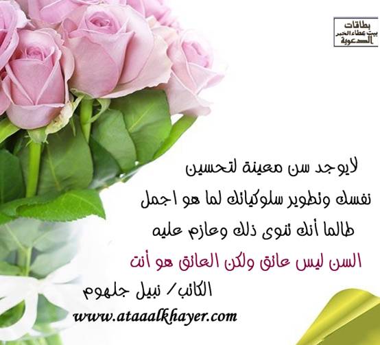السن ليس عائق من:الأخ الأستاذ / نبيل جلهوم عضو جمعية الكُتَّاب ببيت عطاء الخير عضو إتحاد الكتّاب و المثقفين العرب - مصر عضو رابطة أدباء الشام – لندن عضو الإتحاد العالمى للشعراء والمبدعين العرب عضو إتحاد المدربين العرب عضو رابطة الأدب الإسلامى العالمية http://www.ataaalkhayer.com/up/download.php?img=10865 |