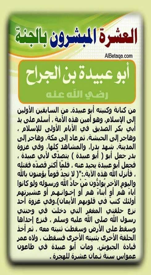 العشرة المبشرون بالجنة (5) http://www.ataaalkhayer.com/up/download.php?img=9642 من:الأخ الدكتور المهندس / محمد الجندي |