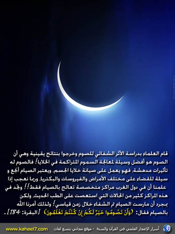 من:الأخ المهندس / عبدالدائم الكحيل http://www.ataaalkhayer.com/up/download.php?img=9641 صورة وآية: الأثر الشفائي للصوم في كل يوم تظهر فوائد جديدة للصوم ... إنها عبادة رائعة وشفاء لكثير من الأمراض.. وجزاء يوم القيامة .... http://www.ataaalkhayer.com/up/download.php?img=12909 بقلم المهندس/ عبد الدائم الكحيل |