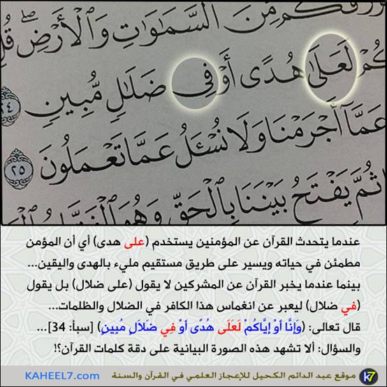 من:الأخ المهندس / عبدالدائم الكحيل http://www.ataaalkhayer.com/up/download.php?img=9641 صور بيانية (2): الهدى والضلال لنتأمل هذه الدقة الفائقة في كلمات القرآن الكريم.. فالمؤمن يسير على طريق الهدى مطمئناً واثقاً بالله تعالى، بينما الكافر يعيش في أعماق الضلال .. كيف فرق القرآن بين الحالتين.. دعونا نرى http://www.ataaalkhayer.com/up/download.php?img=13088 بقلم المهندس/ عبد الدائم الكحيل |
