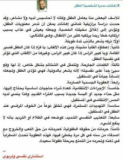 من:الابنة / أسماء المرسى http://www.ataaalkhayer.com/up/download.php?img=9641 إهانات مدمرة لشخصية الطفل http://www.ataaalkhayer.com/up/download.php?img=13095 |