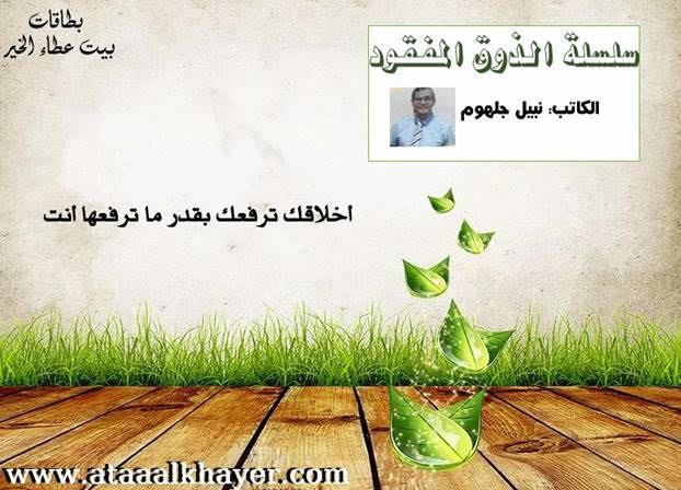 سلسلة الذوق المفقود (21) من:الأخ الأستاذ / نبيل جلهوم عضو جمعية الكُتَّاب ببيت عطاء الخير عضو إتحاد الكتّاب و المثقفين العرب - مصر عضو رابطة أدباء الشام – لندن عضو الإتحاد العالمى للشعراء والمبدعين العرب عضو إتحاد المدربين العرب عضو رابطة الأدب الإسلامى العالمية http://www.ataaalkhayer.com/up/download.php?img=13684 |