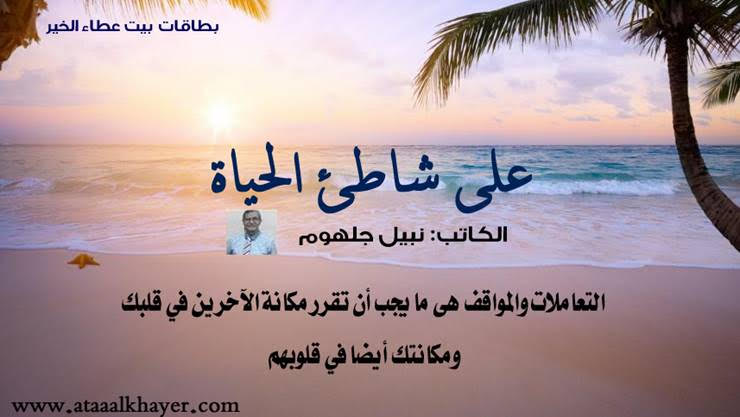 على شاطئ الحياة (08) من:الأخ الأستاذ / نبيل جلهوم عضو جمعية الكُتَّاب ببيت عطاء الخير عضو إتحاد الكتّاب و المثقفين العرب - مصر عضو رابطة أدباء الشام – لندن عضو الإتحاد العالمى للشعراء والمبدعين العرب عضو إتحاد المدربين العرب عضو رابطة الأدب الإسلامى العالمية http://www.ataaalkhayer.com/up/download.php?img=13825 |