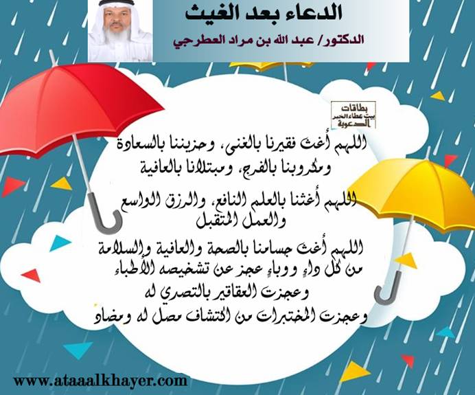 ادع لأخيك بظهر الغيب من سلسة كتب دعاء المنفرد بالله http://www.ataaalkhayer.com/up/download.php?img=9641 الدعاء بعد الغيث (14) http://www.ataaalkhayer.com/up/download.php?img=14024 |