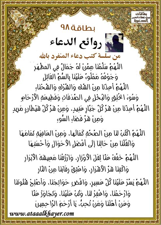 ادع لأخيك بظهر الغيب من سلسة كتب دعاء المنفرد بالله http://www.ataaalkhayer.com/up/download.php?img=9641 روائع الدعاء (98) http://www.ataaalkhayer.com/up/download.php?img=14816 |