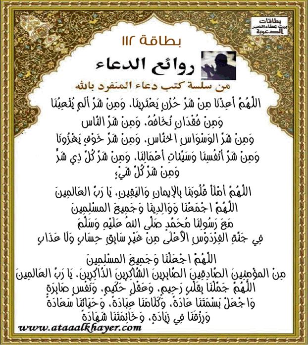ادع لأخيك بظهر الغيب من سلسة كتب دعاء المنفرد بالله http://www.ataaalkhayer.com/up/download.php?img=9641 روائع الدعاء (112) http://www.ataaalkhayer.com/up/download.php?img=14949 |