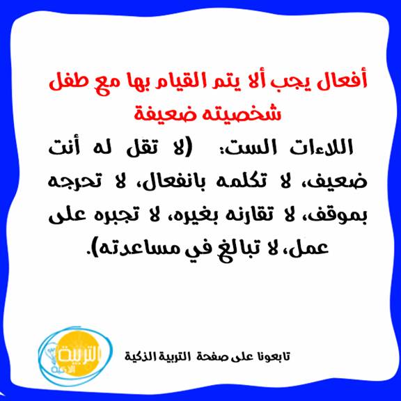 من : الأبنة /أسماء المرسي http://www.ataaalkhayer.com/up/download.php?img=9641 الطفل ذو الشخصية الضعيفة http://www.ataaalkhayer.com/up/download.php?img=15613 |