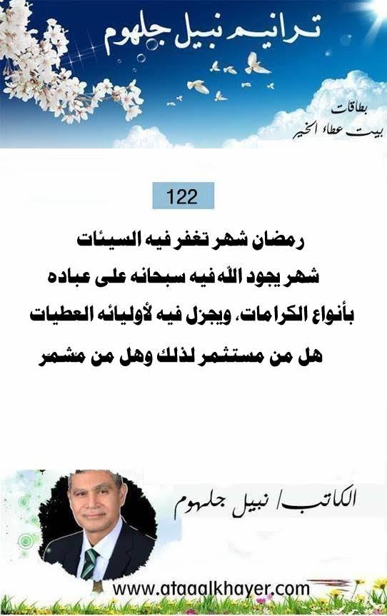 ترانيم نبيل جلهوم (122) من:الأخ الأستاذ / نبيل جلهوم عضو جمعية الكُتَّاب ببيت عطاء الخير عضو إتحاد الكتّاب و المثقفين العرب - مصر عضو رابطة أدباء الشام – لندن عضو الإتحاد العالمى للشعراء والمبدعين العرب عضو إتحاد المدربين العرب عضو رابطة الأدب الإسلامى العالمية http://www.ataaalkhayer.com/up/download.php?img=15446 |