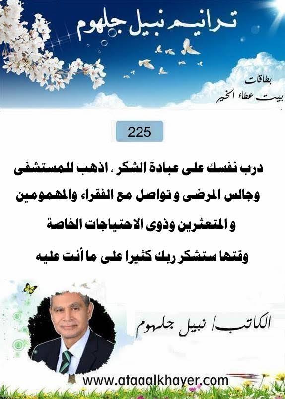 ترانيم نبيل جلهوم(225) من:الأخ الأستاذ / نبيل جلهوم عضو جمعية الكُتَّاب ببيت عطاء الخير عضو إتحاد الكتّاب و المثقفين العرب - مصر عضو رابطة أدباء الشام – لندن عضو الإتحاد العالمى للشعراء والمبدعين العرب عضو إتحاد المدربين العرب عضو رابطة الأدب الإسلامى العالمية http://www.ataaalkhayer.com/up/download.php?img=15983 |