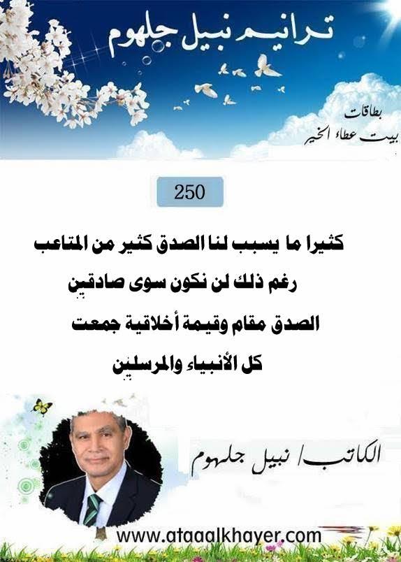 ترانيم نبيل جلهوم(250) من:الأخ الأستاذ / نبيل جلهوم عضو جمعية الكُتَّاب ببيت عطاء الخير عضو إتحاد الكتّاب و المثقفين العرب - مصر عضو رابطة أدباء الشام – لندن عضو الإتحاد العالمى للشعراء والمبدعين العرب عضو إتحاد المدربين العرب عضو رابطة الأدب الإسلامى العالمية http://www.ataaalkhayer.com/up/download.php?img=16056 |