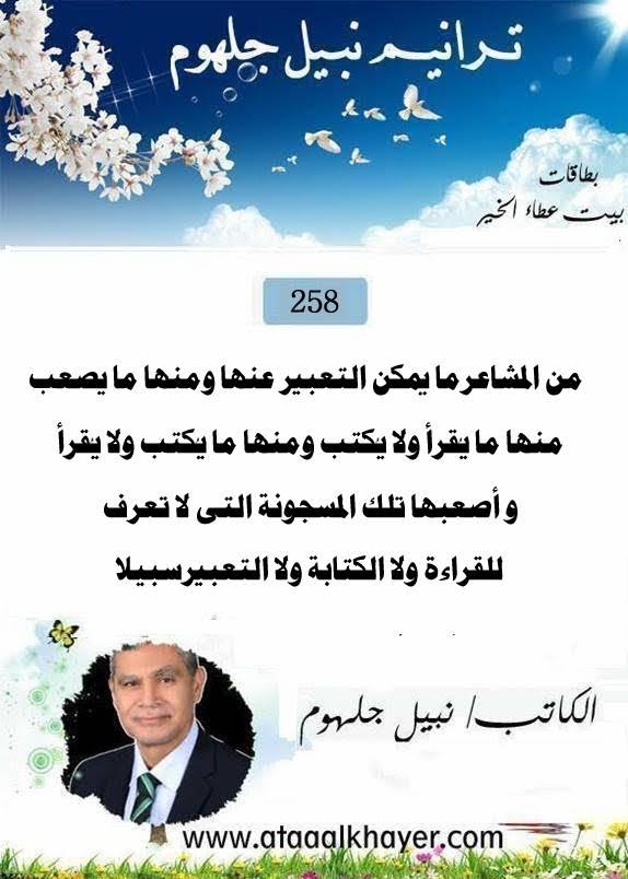 ترانيم نبيل جلهوم(258) من:الأخ الأستاذ / نبيل جلهوم عضو جمعية الكُتَّاب ببيت عطاء الخير عضو إتحاد الكتّاب و المثقفين العرب - مصر عضو رابطة أدباء الشام – لندن عضو الإتحاد العالمى للشعراء والمبدعين العرب عضو إتحاد المدربين العرب عضو رابطة الأدب الإسلامى العالمية http://www.ataaalkhayer.com/up/download.php?img=16106 |