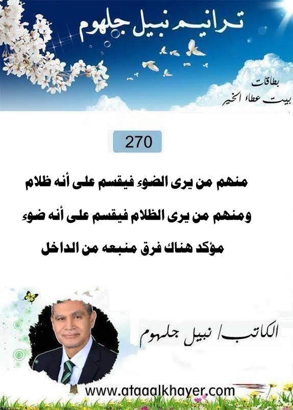ترانيم نبيل جلهوم(270) من:الأخ الأستاذ / نبيل جلهوم عضو جمعية الكُتَّاب ببيت عطاء الخير عضو إتحاد الكتّاب و المثقفين العرب - مصر عضو رابطة أدباء الشام – لندن عضو الإتحاد العالمى للشعراء والمبدعين العرب عضو إتحاد المدربين العرب عضو رابطة الأدب الإسلامى العالمية http://www.ataaalkhayer.com/up/download.php?img=16137 |