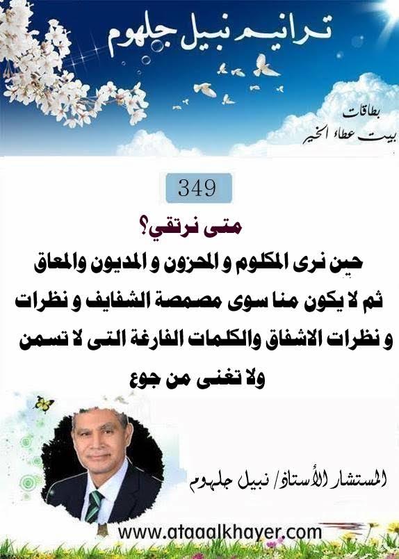 ترانيم نبيل جلهوم(349) من:الأخ الأستاذ / نبيل جلهوم عضو جمعية الكُتَّاب ببيت عطاء الخير عضو إتحاد الكتّاب و المثقفين العرب - مصر عضو رابطة أدباء الشام – لندن عضو الإتحاد العالمى للشعراء والمبدعين العرب عضو إتحاد المدربين العرب عضو رابطة الأدب الإسلامى العالمية http://www.ataaalkhayer.com/up/download.php?img=16385 |