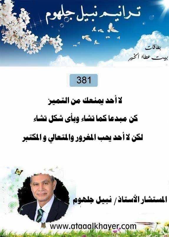 ترانيم نبيل جلهوم(381) من:الأخ الأستاذ / نبيل جلهوم عضو جمعية الكُتَّاب ببيت عطاء الخير عضو إتحاد الكتّاب و المثقفين العرب - مصر عضو رابطة أدباء الشام – لندن عضو الإتحاد العالمى للشعراء والمبدعين العرب عضو إتحاد المدربين العرب عضو رابطة الأدب الإسلامى العالمية http://www.ataaalkhayer.com/up/download.php?img=16546 |