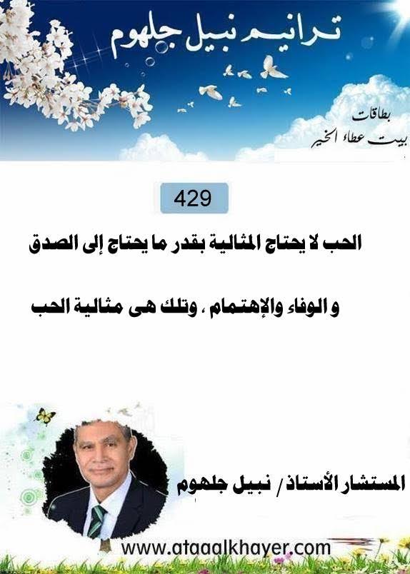ترانيم نبيل جلهوم(429) من:الأخ الأستاذ / نبيل جلهوم عضو جمعية الكُتَّاب ببيت عطاء الخير عضو إتحاد الكتّاب و المثقفين العرب - مصر عضو رابطة أدباء الشام – لندن عضو الإتحاد العالمى للشعراء والمبدعين العرب عضو إتحاد المدربين العرب عضو رابطة الأدب الإسلامى العالمية http://www.ataaalkhayer.com/up/download.php?img=16725 |