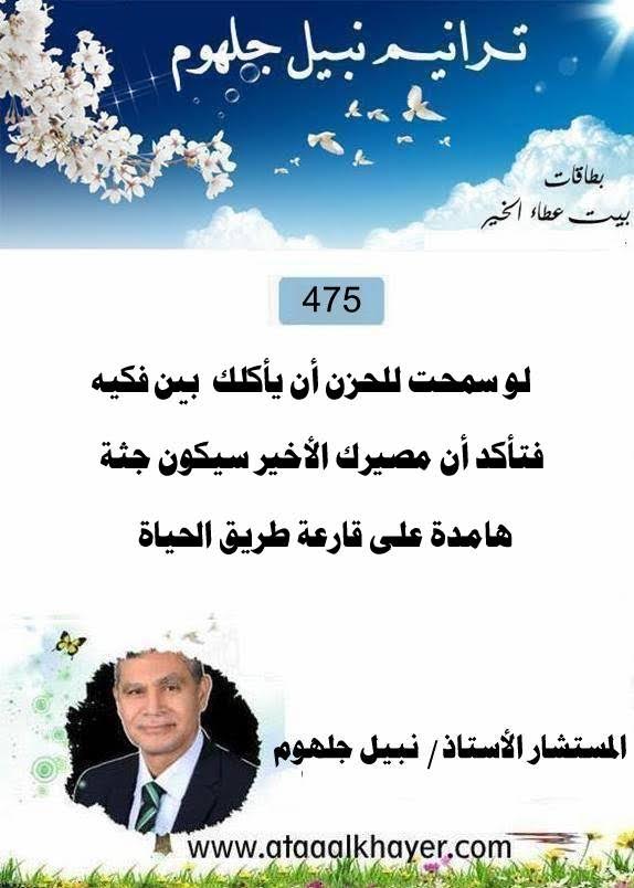 ترانيم نبيل جلهوم(475) من:الأخ الأستاذ / نبيل جلهوم عضو جمعية الكُتَّاب ببيت عطاء الخير عضو إتحاد الكتّاب و المثقفين العرب - مصر عضو رابطة أدباء الشام – لندن عضو الإتحاد العالمى للشعراء والمبدعين العرب عضو إتحاد المدربين العرب عضو رابطة الأدب الإسلامى العالمية http://www.ataaalkhayer.com/up/download.php?img=16798 http://www.ataaalkhayer.com/up/download.php?img=16799 |