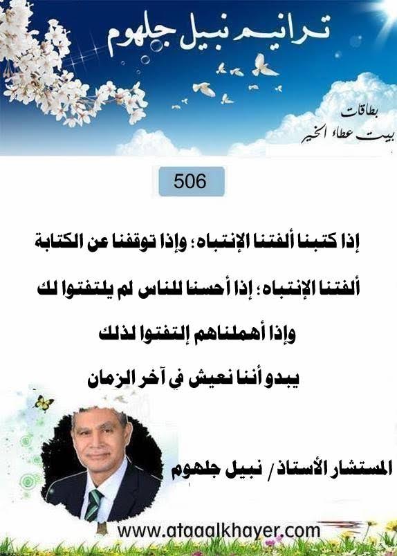 ترانيم نبيل جلهوم(506) من:الأخ الأستاذ / نبيل جلهوم عضو جمعية الكُتَّاب ببيت عطاء الخير عضو إتحاد الكتّاب و المثقفين العرب - مصر عضو رابطة أدباء الشام – لندن عضو الإتحاد العالمى للشعراء والمبدعين العرب عضو إتحاد المدربين العرب عضو رابطة الأدب الإسلامى العالمية http://www.ataaalkhayer.com/up/download.php?img=17020 |
