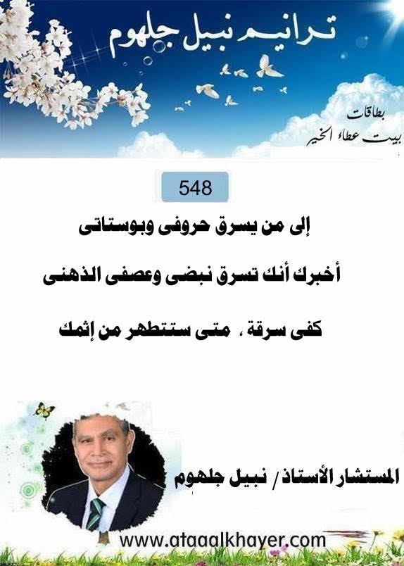 ترانيم نبيل جلهوم(548) من:الأخ الأستاذ / نبيل جلهوم عضو جمعية الكُتَّاب ببيت عطاء الخير عضو إتحاد الكتّاب و المثقفين العرب - مصر عضو رابطة أدباء الشام – لندن عضو الإتحاد العالمى للشعراء والمبدعين العرب عضو إتحاد المدربين العرب عضو رابطة الأدب الإسلامى العالمية http://www.ataaalkhayer.com/up/download.php?img=17179 http://www.ataaalkhayer.com/up/download.php?img=17180 |