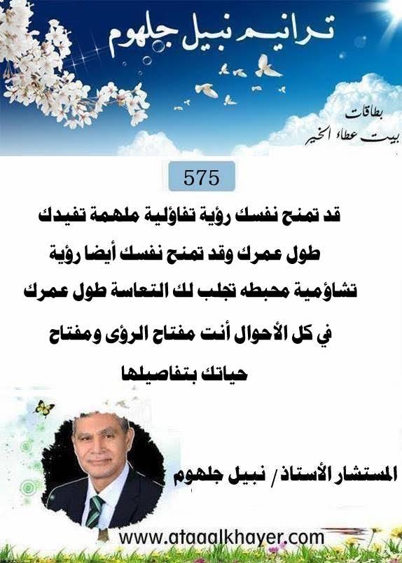 ترانيم نبيل جلهوم(575) من:الأخ الأستاذ / نبيل جلهوم عضو جمعية الكُتَّاب ببيت عطاء الخير عضو إتحاد الكتّاب و المثقفين العرب - مصر عضو رابطة أدباء الشام – لندن عضو الإتحاد العالمى للشعراء والمبدعين العرب عضو إتحاد المدربين العرب عضو رابطة الأدب الإسلامى العالمية http://www.ataaalkhayer.com/up/download.php?img=17271 |