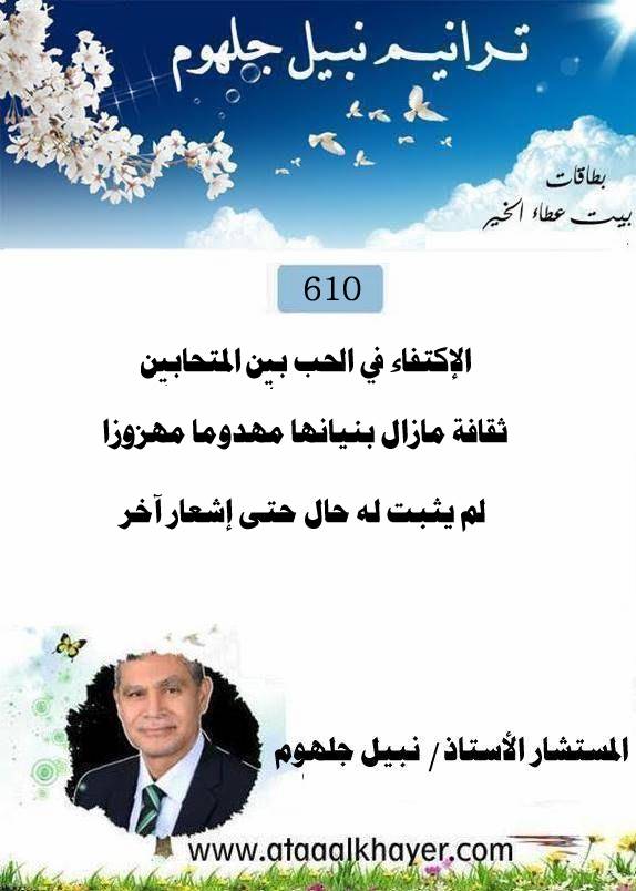ترانيم نبيل جلهوم(610) من:الأخ الأستاذ / نبيل جلهوم عضو جمعية الكُتَّاب ببيت عطاء الخير عضو إتحاد الكتّاب و المثقفين العرب - مصر عضو رابطة أدباء الشام – لندن عضو الإتحاد العالمى للشعراء والمبدعين العرب عضو إتحاد المدربين العرب عضو رابطة الأدب الإسلامى العالمية http://www.ataaalkhayer.com/up/download.php?img=17404 |