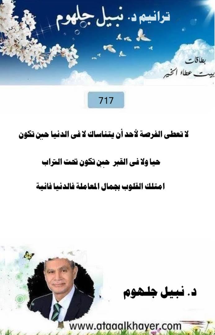 ترانيم نبيل جلهوم(717) من:الأخ الأستاذ / نبيل جلهوم عضو جمعية الكُتَّاب ببيت عطاء الخير عضو إتحاد الكتّاب و المثقفين العرب - مصر عضو رابطة أدباء الشام – لندن عضو الإتحاد العالمى للشعراء والمبدعين العرب عضو إتحاد المدربين العرب عضو رابطة الأدب الإسلامى العالمية http://www.ataaalkhayer.com/up/download.php?img=17790 |