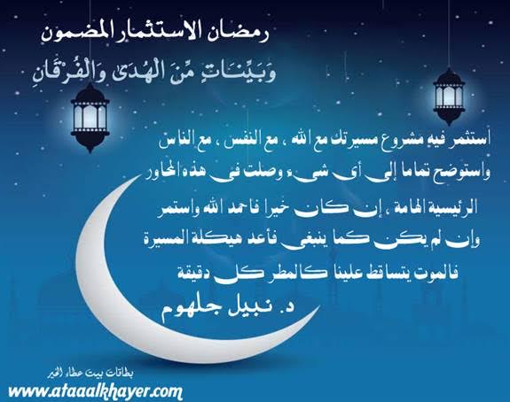 رمضان الاستثمار المضمون (17) {وَبَيِّنَاتٍ مِّنَ الْهُدَىظ° وَالْفُرْقَانِ} من:الأخ الأستاذ / نبيل جلهوم عضو جمعية الكُتَّاب ببيت عطاء الخير عضو إتحاد الكتّاب و المثقفين العرب - مصر عضو رابطة أدباء الشام – لندن عضو الإتحاد العالمى للشعراء والمبدعين العرب عضو إتحاد المدربين العرب عضو رابطة الأدب الإسلامى العالمية http://www.ataaalkhayer.com/up/download.php?img=18089 |