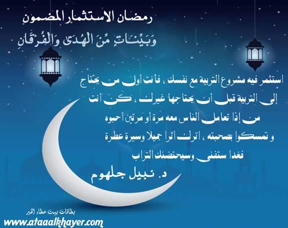 رمضان الاستثمار المضمون (23) {وَبَيِّنَاتٍ مِّنَ الْهُدَىظ° وَالْفُرْقَانِ} من:الأخ الأستاذ / نبيل جلهوم عضو جمعية الكُتَّاب ببيت عطاء الخير عضو إتحاد الكتّاب و المثقفين العرب - مصر عضو رابطة أدباء الشام – لندن عضو الإتحاد العالمى للشعراء والمبدعين العرب عضو إتحاد المدربين العرب عضو رابطة الأدب الإسلامى العالمية http://www.ataaalkhayer.com/up/download.php?img=18101 |