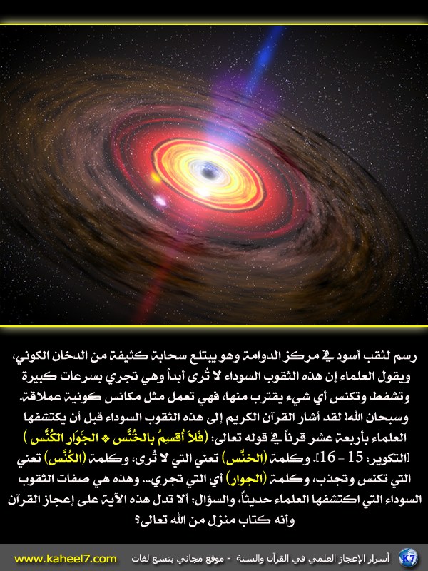 من:الأخ المهندس / عبدالدائم الكحيل http://www.ataaalkhayer.com/up/download.php?img=9641 صورة وآية: الجوارِ الكنَّس إنها حقيقة علمية لم يتوصل إليها العلماء إلا في القرن العشرين ولكن القرآن تحدث عنها بكل وضوح، لنتأمل بالصور والفيديو.... http://www.ataaalkhayer.com/up/download.php?img=20589 ــــــــــــ بقلم المهندس /عبد الدائم الكحيل |