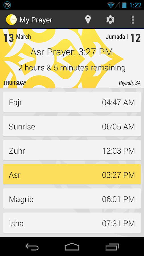 يعتبر برنامج صلاتي – My Prayer من اشهر برامج الأذان وافضلها، حيث بإمكانه تحديد موقعك وموعد الأذان المحدد لمنطقتك بطريقة ذكية. مميزات التطبيق