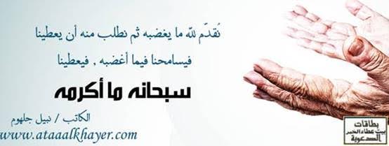 الأخ الأستاذ / نبيل جلهوم عضو جمعية الكُتَّاب ببيت عطاء الخير عضو إتحاد الكتّاب و المثقفين العرب - مصر عضو رابطة أدباء الشام - لندن سبحانه هو يعلم ما ينفعنا وما يضرنا . سبحانه وحده ,, هو من يعلم ماينفعنا ومايضرنا .. فقد يبكى أحدنا حين يمنع الله عنه شيئا يحبه .. ثم لا يلبث قليلا من الوقت مع استغراق قليلا من التفكر والتفكير والتدبر.. حتى يرى أن منعه سبحانه كان هو الأصلح والأنفع والأكثر خيرا.. ومقابل ذلك وعلى النقيض منه .. قد تفرح وتطير فرحا حين يمنحك الله شيئا تحبه.. ثم ماتلبث قليلا من الوقت حتى ترى غير ماكان يفرحك وطرت له من قبل فرحا وطربا .. خلاصة إيمانية :. ثق تماما أن ربك لن يختار لك إلا الخير كله حتى لو كان ظاهره لك غير ذلك. فسبحانه من خالق عظيم .. يعلم ماينفعنا ومايضرنا. فاللهم رضّنا بما أعطيتنا واعطنا خيرا منه وأكثر مما نتوقعه . |