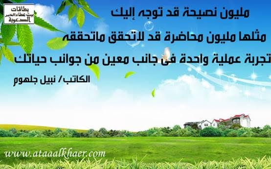 مليون نصيحة الأخ الأستاذ / نبيل جلهوم عضو جمعية الكُتَّاب ببيت عطاء الخير عضو إتحاد الكتّاب و المثقفين العرب - مصر عضو رابطة أدباء الشام – لندن عضو الإتحاد العالمى للشعراء والمبدعين العرب http://www.ataaalkhayer.com/up/download.php?img=4508 |