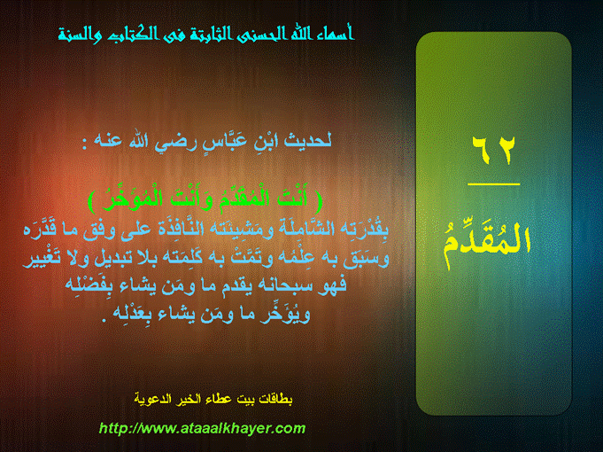 بطاقات أسماء الله الحسنى الثابتة فى الكتاب والسنة الحلقة الحادية و الثلاثون من الأخت الزميلة / راجية الجنة |