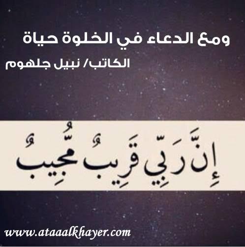 ومع الدعاء في الخلوة حياة الأخ الأستاذ / نبيل جلهوم عضو جمعية الكُتَّاب ببيت عطاء الخير عضو إتحاد الكتّاب و المثقفين العرب - مصر عضو رابطة أدباء الشام – لندن عضو الإتحاد العالمى للشعراء والمبدعين العرب http://www.ataaalkhayer.com/up/download.php?img=4947 |