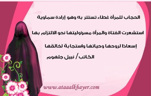 حجاب المرأة الأخ الأستاذ / نبيل جلهوم عضو جمعية الكُتَّاب ببيت عطاء الخير عضو إتحاد الكتّاب و المثقفين العرب - مصر عضو رابطة أدباء الشام – لندن عضو الإتحاد العالمى للشعراء والمبدعين العرب http://www.ataaalkhayer.com/up/download.php?img=4956 |