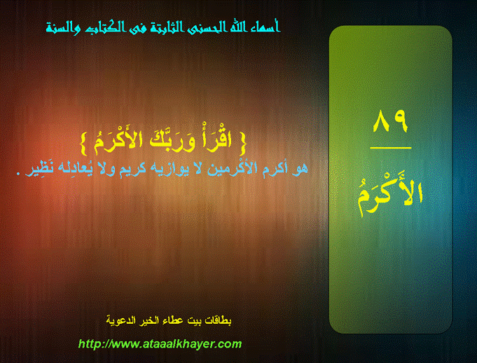 بطاقات أسماء الله الحسنى الثابتة فى الكتاب والسنة الحلقة الخامسة والأربعون من الأخت الزميلة / راجية الجنة |