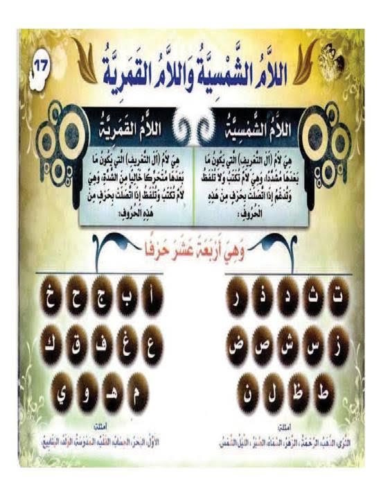 تيسير قواعد اللغة العربية للمبتدئين ( 15 – 37 ) من الأخت الزميلة / منة الرحمن اللام الشمسية واللام القمرية |