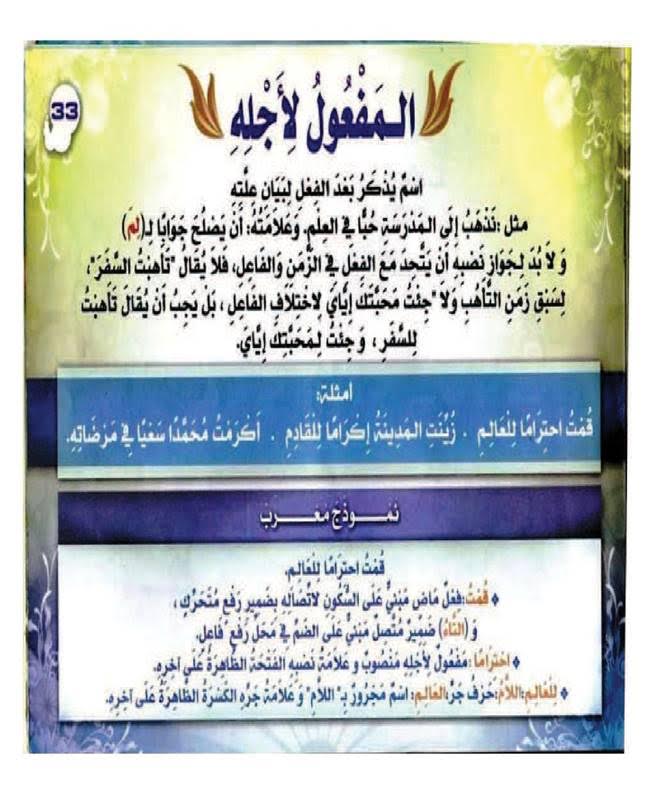 تيسير قواعد اللغة العربية للمبتدئين ( 31 – 37 ) من الأخت الزميلة / منة الرحمن المفعول لأجله |