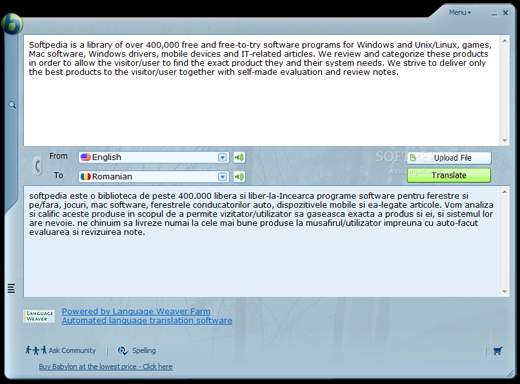 برنامج الترجمة الرائع بابيلون Babylon v9.0.0 r30 متاح بأكثر من 75 لغة منها اللغة العربية يميز بابليون تلقائيا اللغة التي تستخدمها وتحتاجها ويقوم بتوصيل النتائج التي تريدها بهذه اللغات. http://www.ataaalkhayer.com/up/download.php?img=115 قم ببساطة بالنقر على أي تطبيق على سطح المكتب لتحصل على ترجمة فورية وتتمكن من الاطلاع على القواميس والموسوعات التي تغطي قطاعًا واسعًا من المواد، والتصنيفات والمواضيع. سوف تجد برنامج بابليون للتهجي والمراجعة في خدمتك لتتأكد من أنك لم تلغِ أو تتخطَي أي شيء هام ويسمح لك كذلك بأن تنتبه للأخطاء (أخطاء الطباعة، القواعد، الخ) التي قد تكون ارتكبتها عند الكتابة.سوف تساعدك خدمة التهجي والمراجعة التي يوفرها بابليون لتكون متهجيًا وكاتبًا على نحو أفضل. سوف تقترح عليك هذه الميزة اختيار أفضل كلمة سياقية بديلة، أو أفضل مصطلح أو تعبير وسوف يقوم بفحص النص تلقائيا.ستكون هذه الخدمة الأساسية مفيدةً للغاية حين كتابة الرسائل الالكترونية والوثائق مع إمكانات أدوات الميكروسوفت أوفيس وأيضا في مجال النصوص على صفحات الويب. يُمكِّنك بابليون 9 من المشاركة -بسهولة في مجتمع بابليون الكبير من متحدثي لغتهم الأم والمترجمين المحترفين في العالم أجمع . حيث يُمكِّنك من توجيه أسئلتك لمجتمع بابليون الحي للترجمة البشرية ( Babylon Live Human Translation Community ) سواء كان سؤلاً متعلقًا بمسألة لغوية، أو سؤالا قصيرًا أو مراجعة لمشروع أكاديمي، ويتألف مجتمع بابليون الحي للترجمة البشرية من آلاف المستخدمين لبابليون، وهو مُتاح لمساعدتك على مدار 24 ساعة في اليوم! |