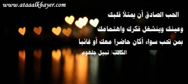 الحب الصادق الأخ الأستاذ / نبيل جلهوم عضو جمعية الكُتَّاب ببيت عطاء الخير عضو إتحاد الكتّاب و المثقفين العرب - مصر عضو رابطة أدباء الشام – لندن عضو الإتحاد العالمى للشعراء والمبدعين العرب http://www.ataaalkhayer.com/up/download.php?img=5711 |